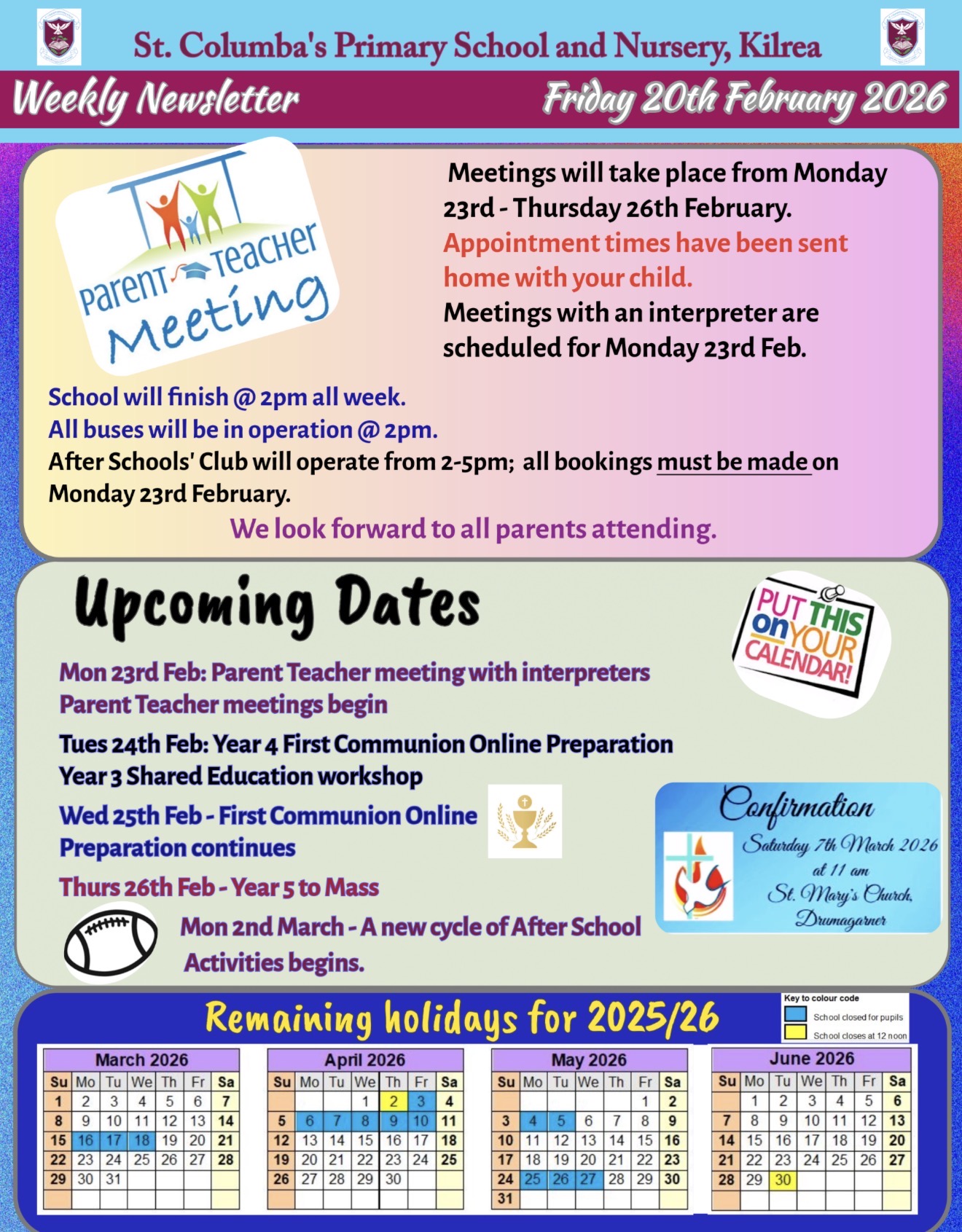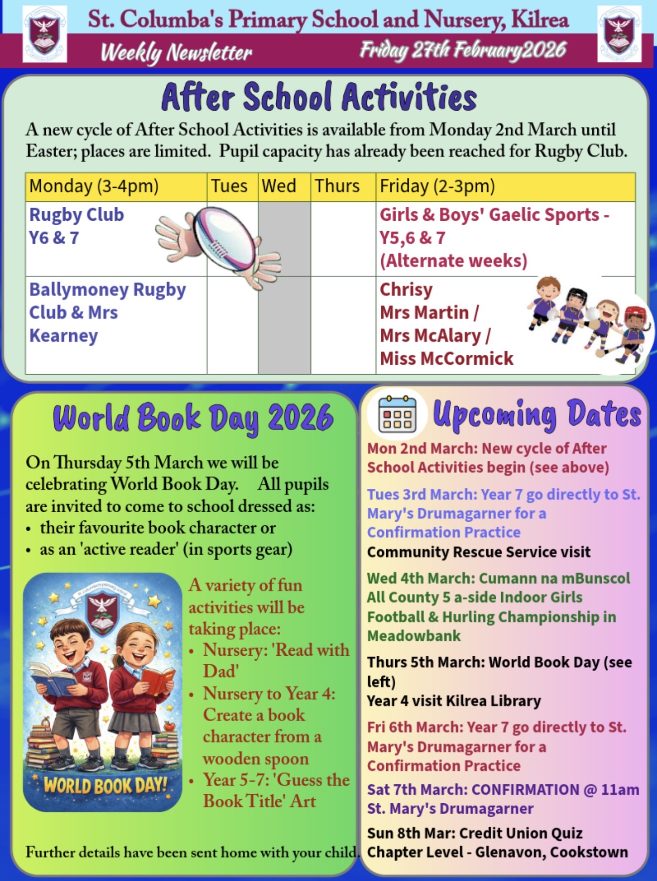 After-School Activities – Next Week Please note that Boys’ Football on Friday will be the only after?school activity taking place next week.